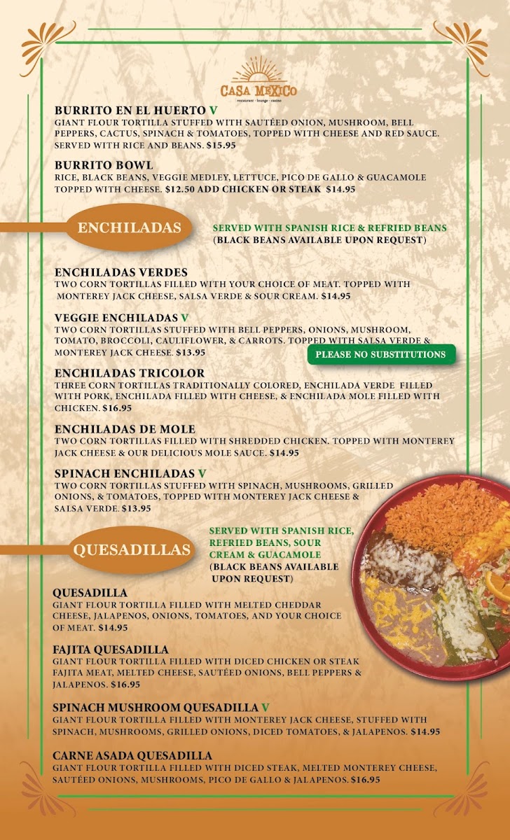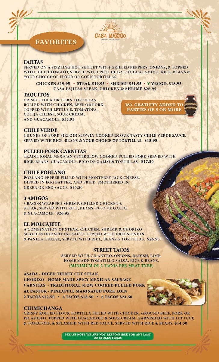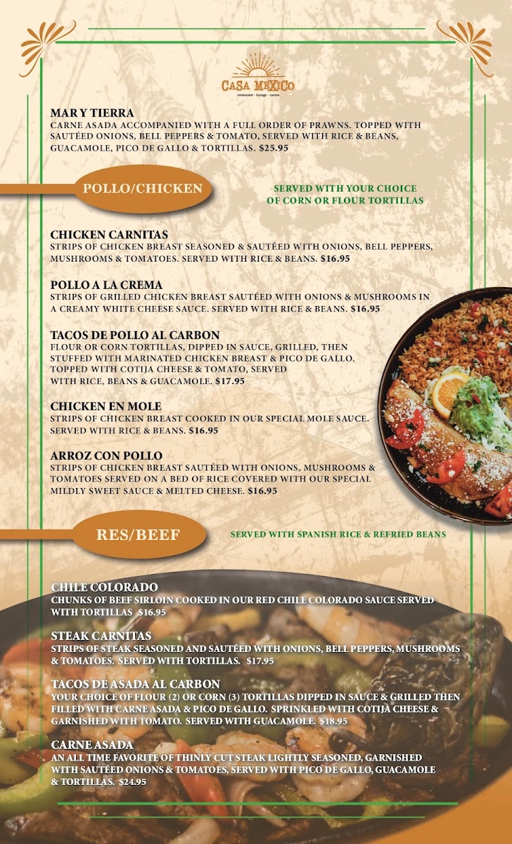 The drink menu is equally impressive, accommodating every palate, while the friendly service enhances the overall dining experience. Whether you're a fan of Mexican cuisine or prefer something milder, Casa Mexico promises a delightful meal for all.